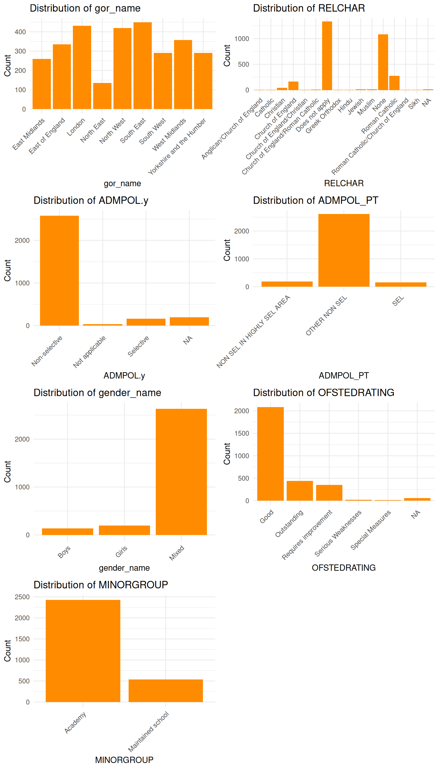 england_model7 <- lm(log(ATT8SCR) ~ log(PTFSM6CLA1A) + log(PERCTOT) + log(PNUMEAL) + OFSTEDRATING + gor_name + PTPRIORLO + ADMPOL_PT, data = england_filtered_clean, na.action = na.exclude)