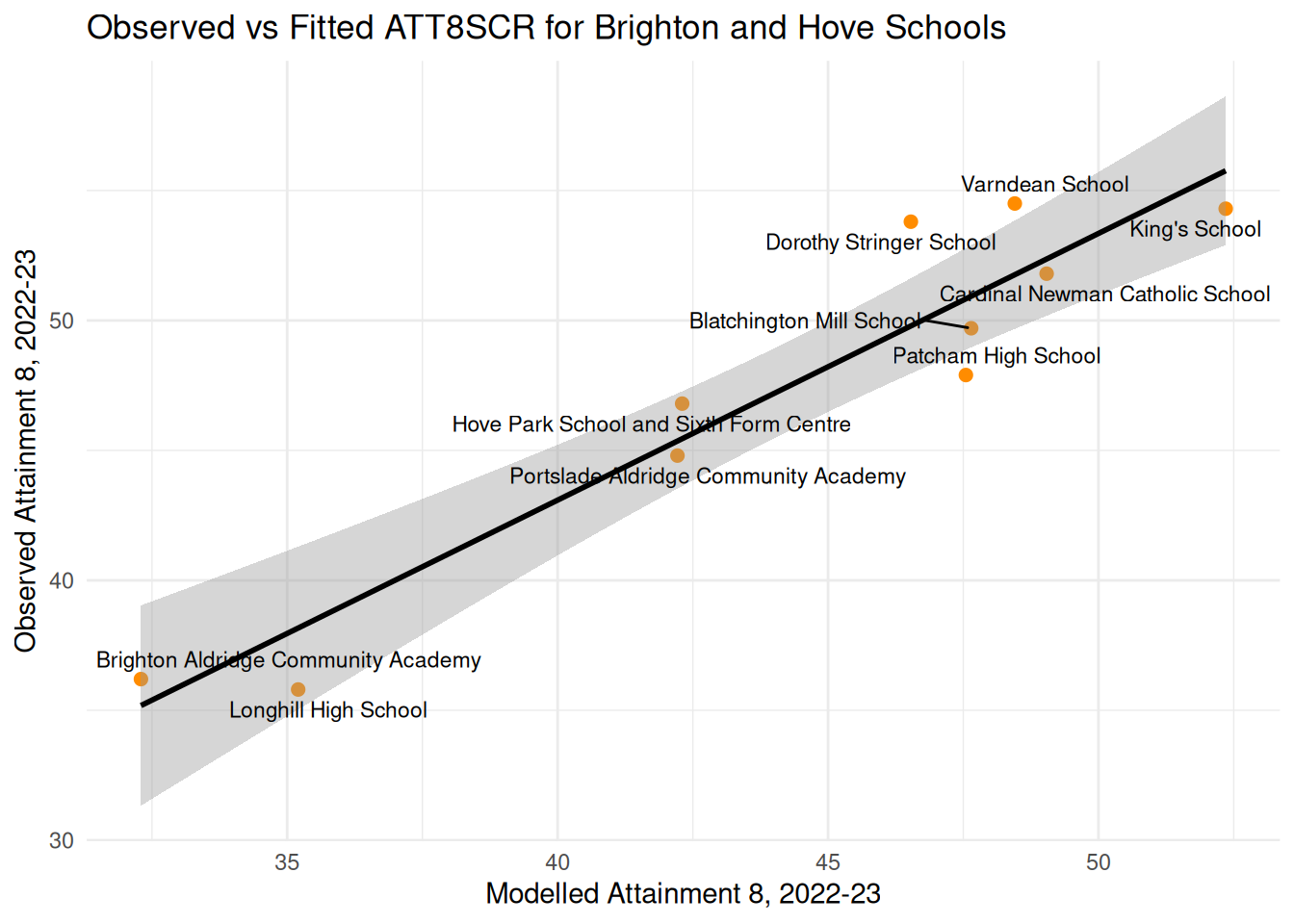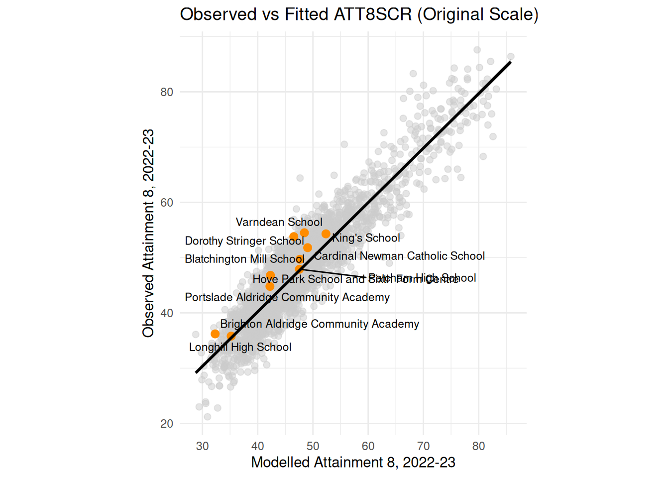 title = "Observed vs Fitted ATT8SCR for Brighton and Hove Schools",